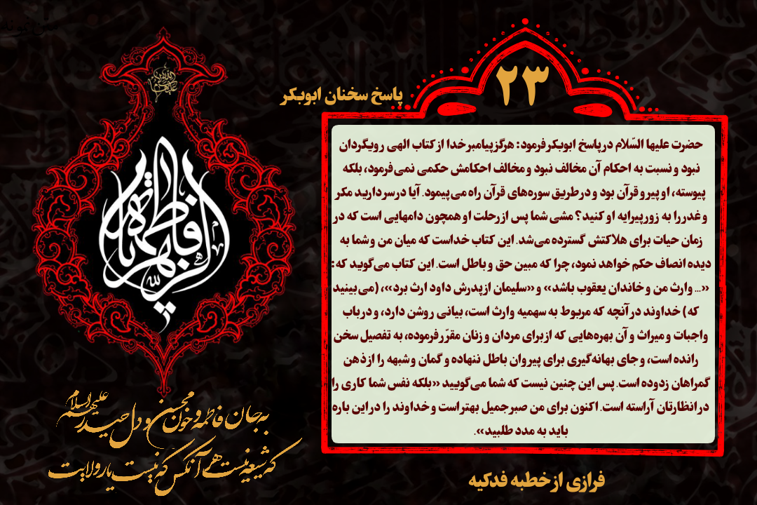 برچسبها: خطبه_فدکیه , حضرت_زهرا , فدک , ایام فاطمیه