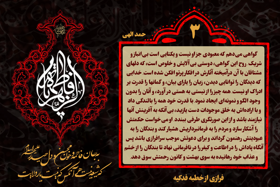 📚 حمد الهی در خطبه فدکیه حضرت فاطمه زهرا سلاماللهعلیها