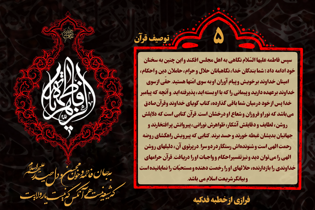 #خطبه_فدکیه، #حضرت_زهرا، #قرآن، #توصیف_قرآن، #کلام_فاطمه، #احکام_اسلامی، #هدایت، #نور_الهی، #شریعت، #وبلاگ_احکام_ما